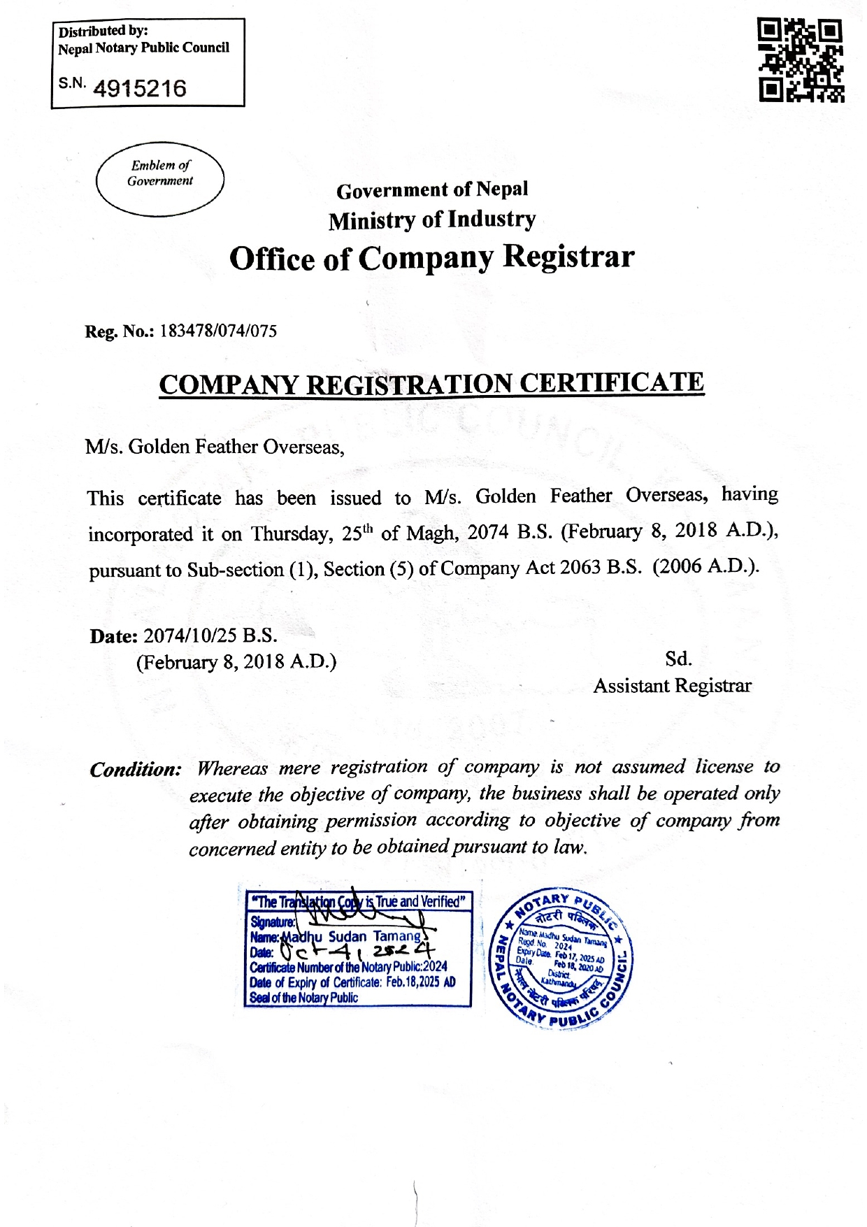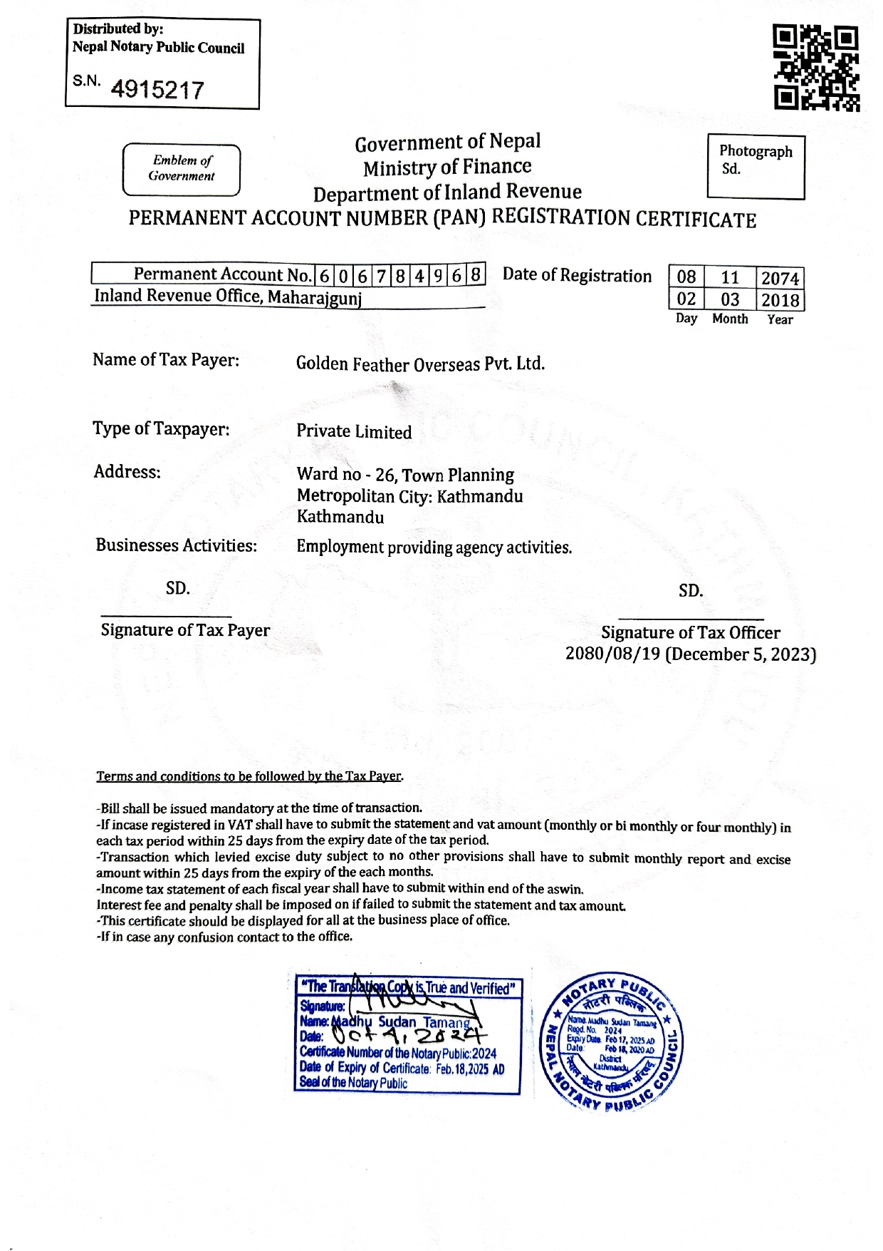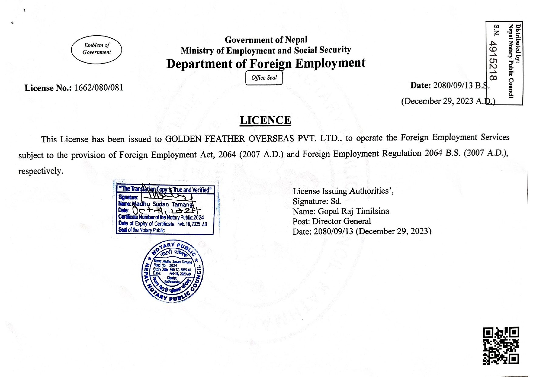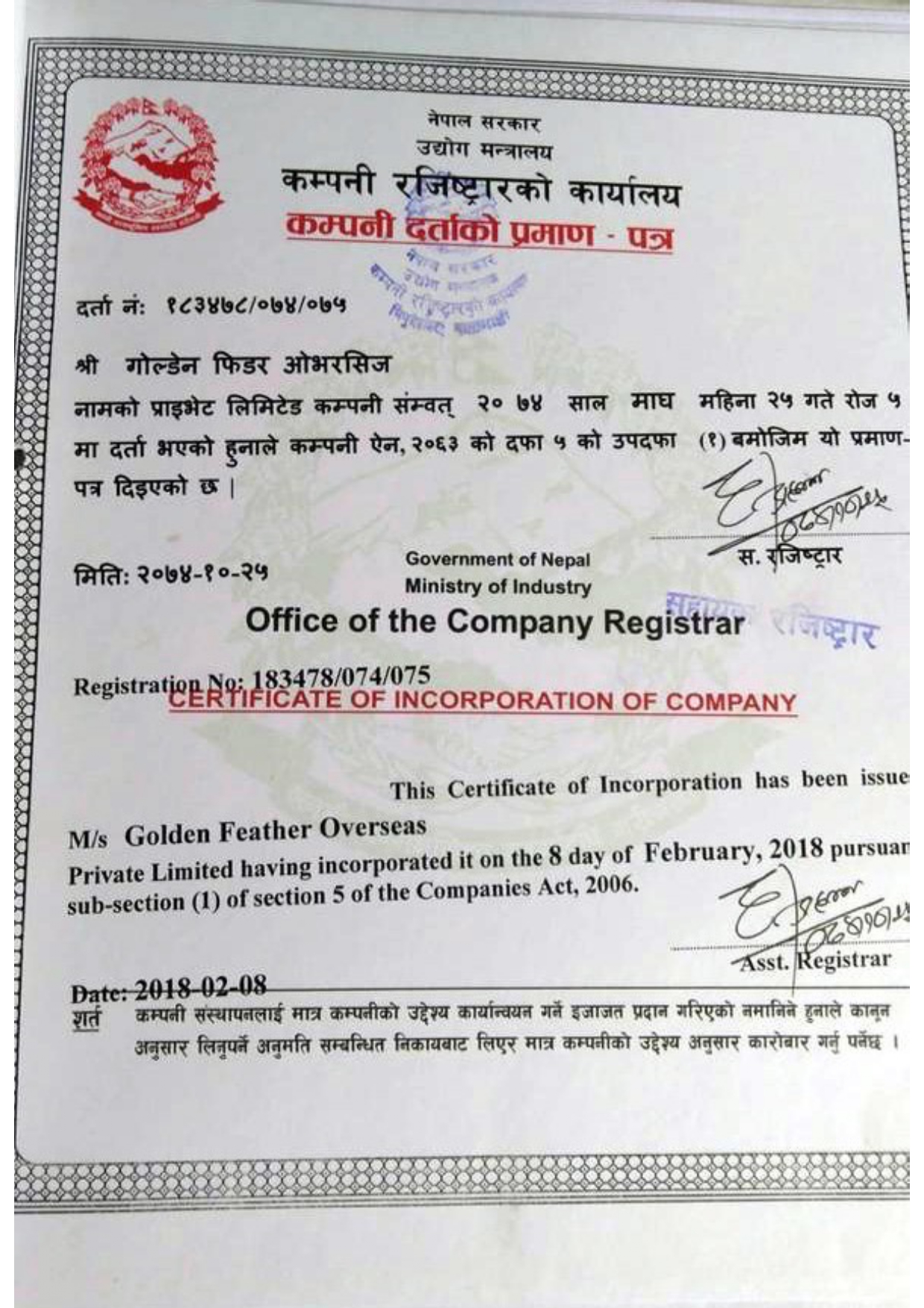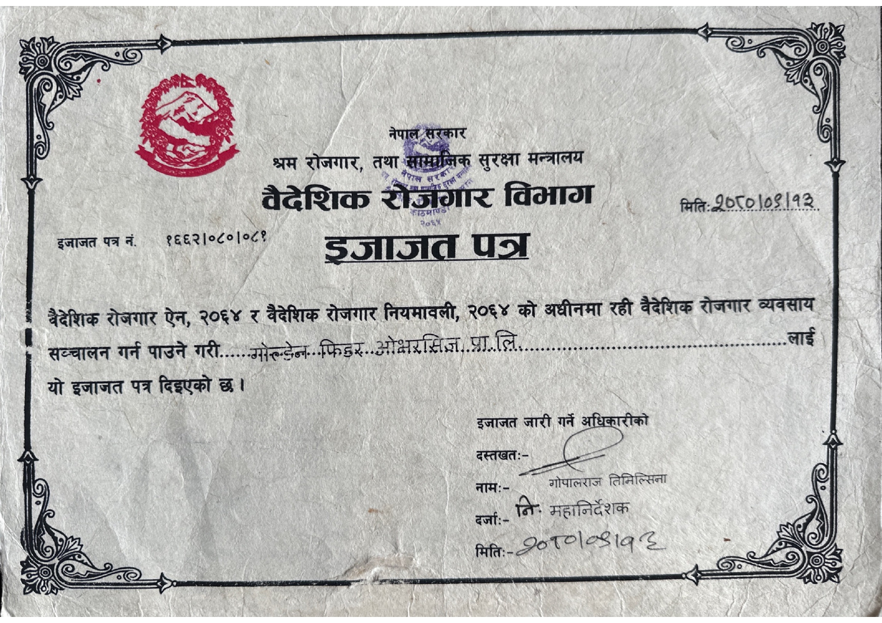we are certified by Nepal Government We hold a validity from Nepal Government to work and serve people for foreign employment.